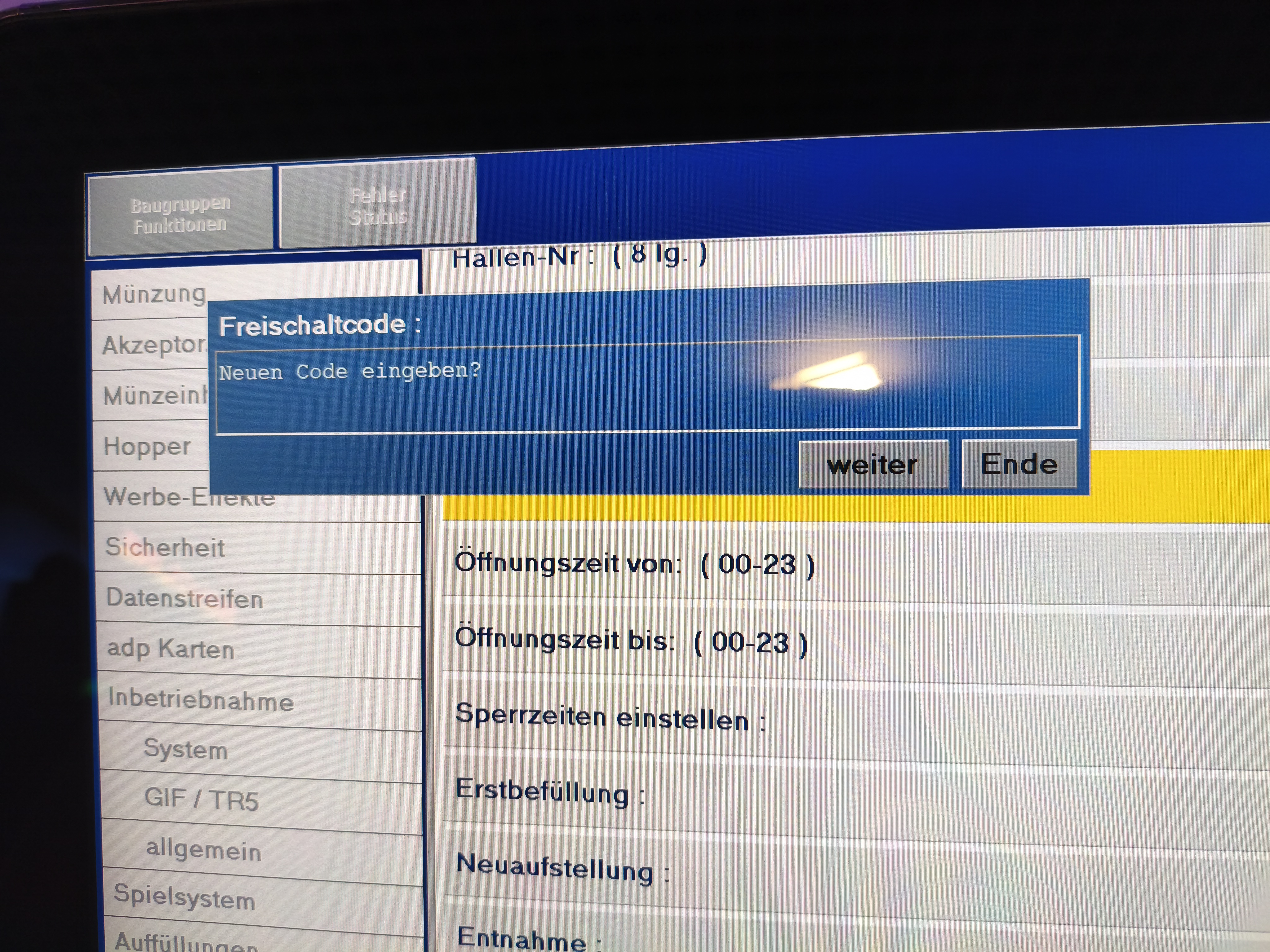 Einmal im Jahr benötigen Bally und adp Merkur Geräte einen neuen Freischaltcode.